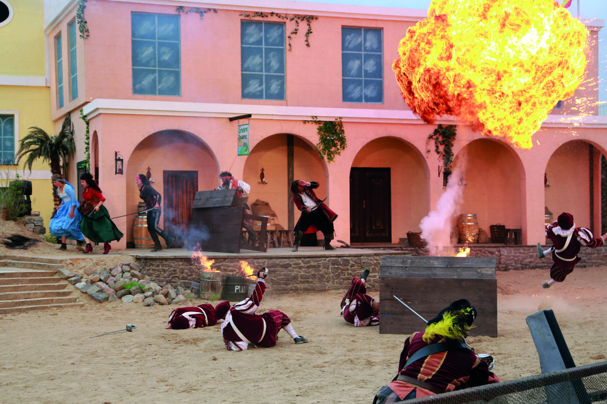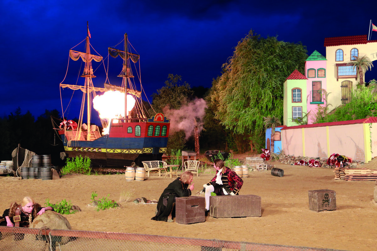 „Familie Flint – Einmal Pirat, immer Pirat“. In dieser actionreichen Open-Air-Show erleben Besucher eine mitreißende Piratengeschichte voller Humor, spektakulärer Stunts, Feuer-Effekte und großer Seeschlachten.